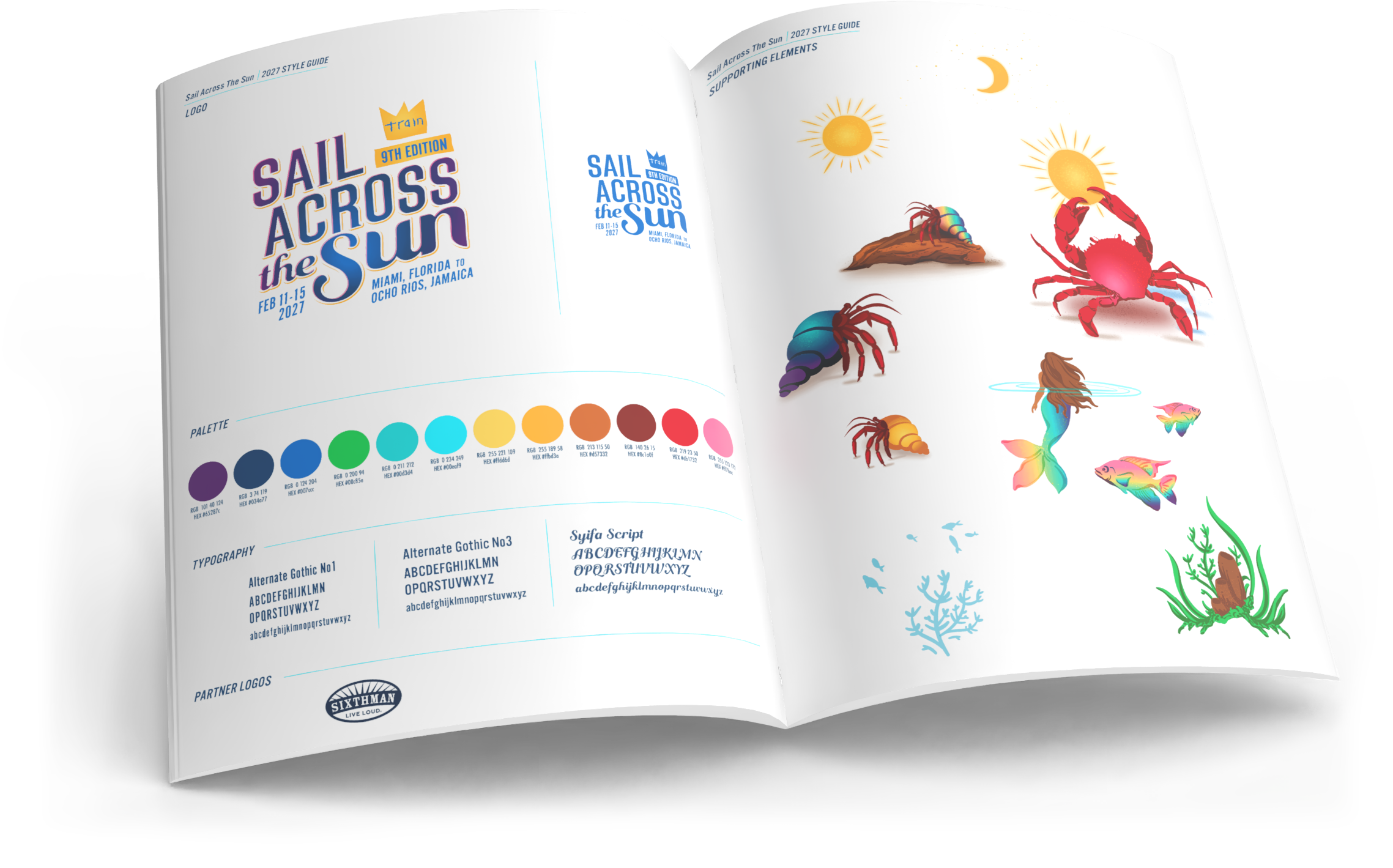 The 2027 Sail Across the Sun concept centers around a miniature universe in a bottle, an underwater dream of midnight waves, rainbow creatures, and magic between day and night. Building on the foundation established in our previous years' branding, we evolved the world we've been building together, adding new depth and dimension while staying true to the visual language fans have come to recognize and love.